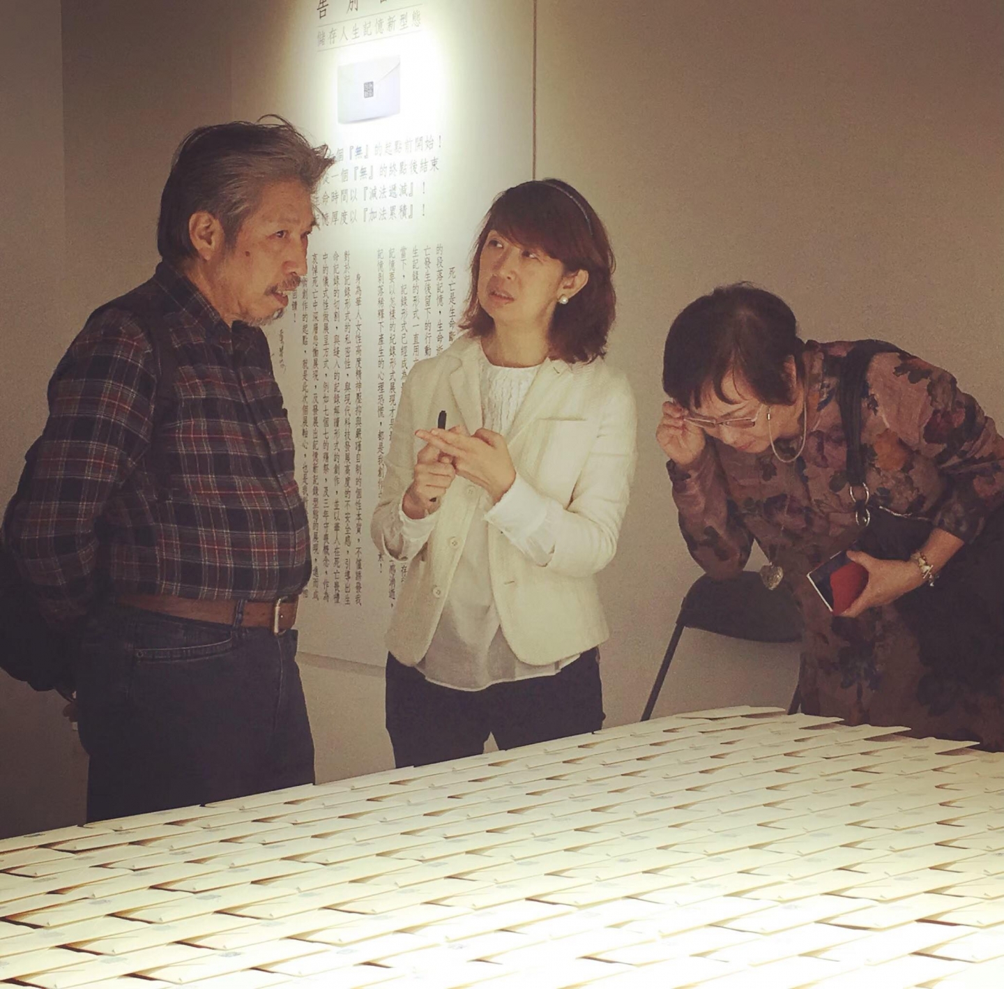 作者在現場和指導教授及師母解釋作品意義。